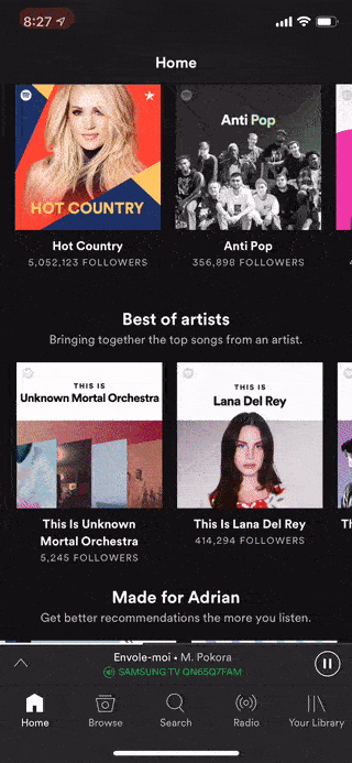 Second, lengthy scrolling makes it hard to find the target. Users have to scroll two full-screen size lengths to get to their “Recently Played” every time! It’s already screaming bad design. “Recently Played” is available in “Your Library” screen, but if the user wants to access it through the home screen, it isn't that accessible, and it only adds frustration.